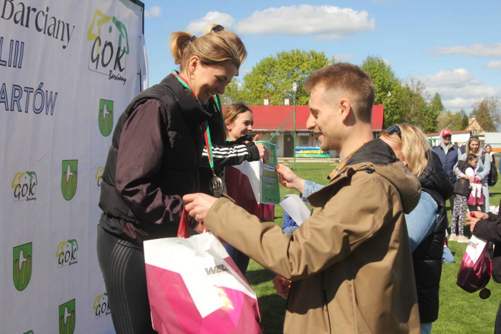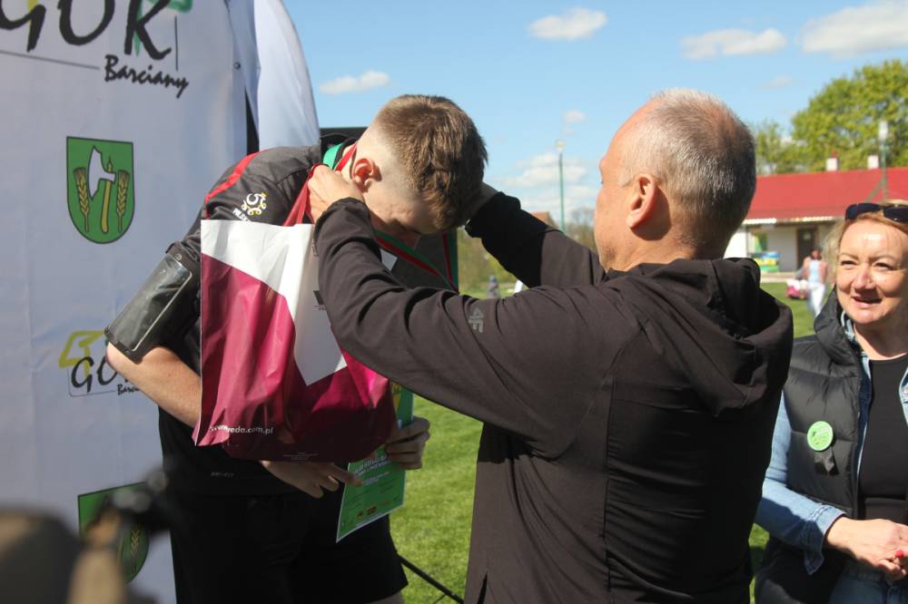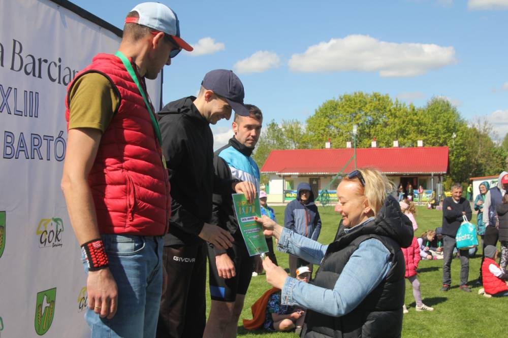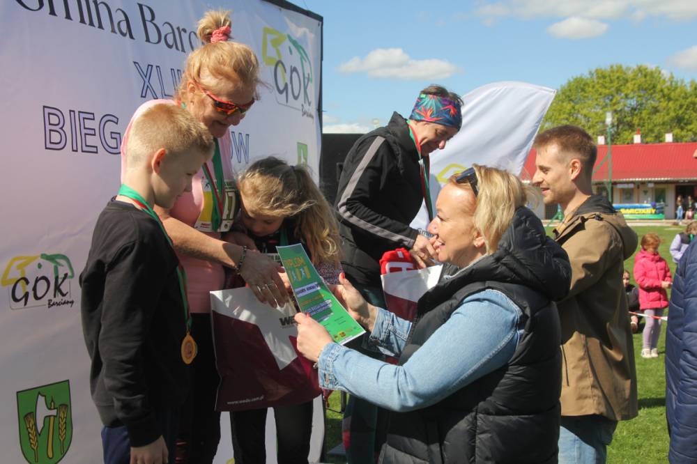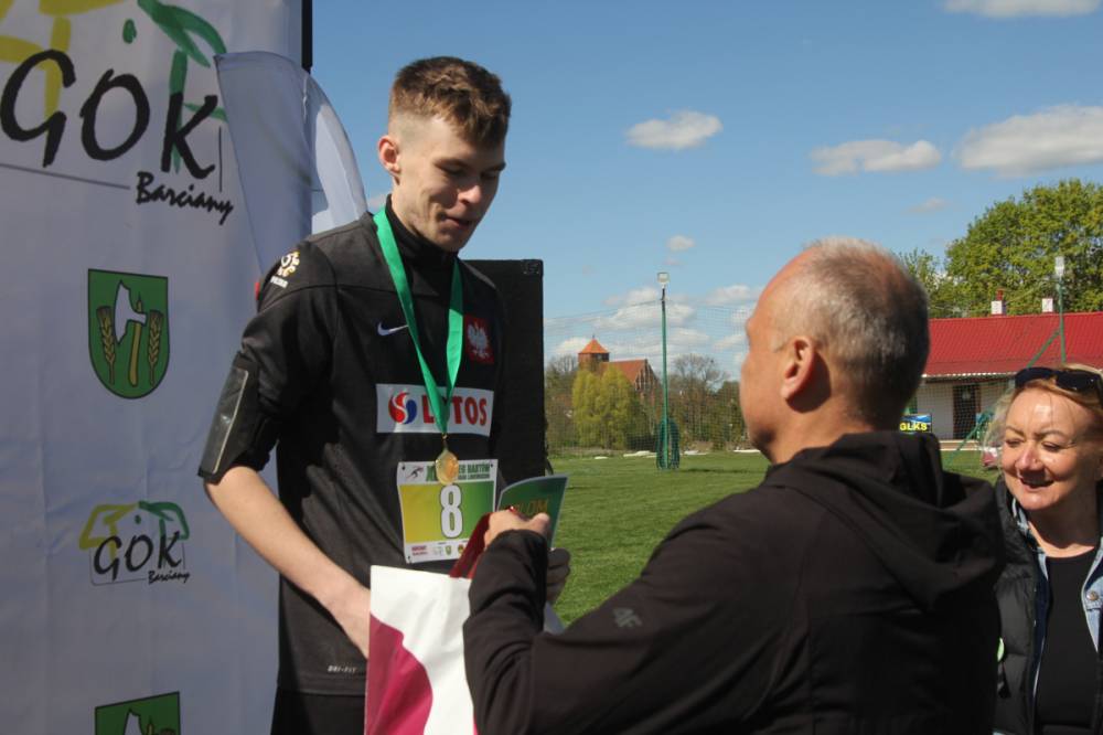 Trasa tradycyjnie wiodła ulicami Barcian. Wśród startujących nie zabrakło zarówno doświadczonych biegaczy, jak i amatorów, w tym także dzieci z przedszkola i szkoły podstawowej, dla których przygotowaliśmy specjalne kategorie i trasy. Najstarszym uczestnikiem był 73-letni Jan Melnyczok z Bartoszyc, który 6 lat tremu zadebiutował w swojej pierwszej imprezie biegowej właśnie u nas w Barcianach. Zwycięzcą biegu okazał się Albert Woronowski z Bań Mazurskich, trasę przebiegł w czasie 11 minut i 44 sekund. Wśród kobiet triumfowała Justyna Rzyp z Kętrzyna, reprezentująca KS Zamek Kurzętnik.